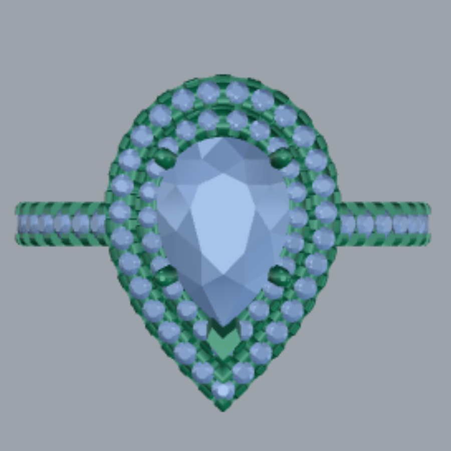 This is a 3DM CAD file of a timeless Pear Cut Halo engagement ring design. The Halo design emphasizes the beauty of the center stone, making it perfect for custom jewelry projects and professional rendering.