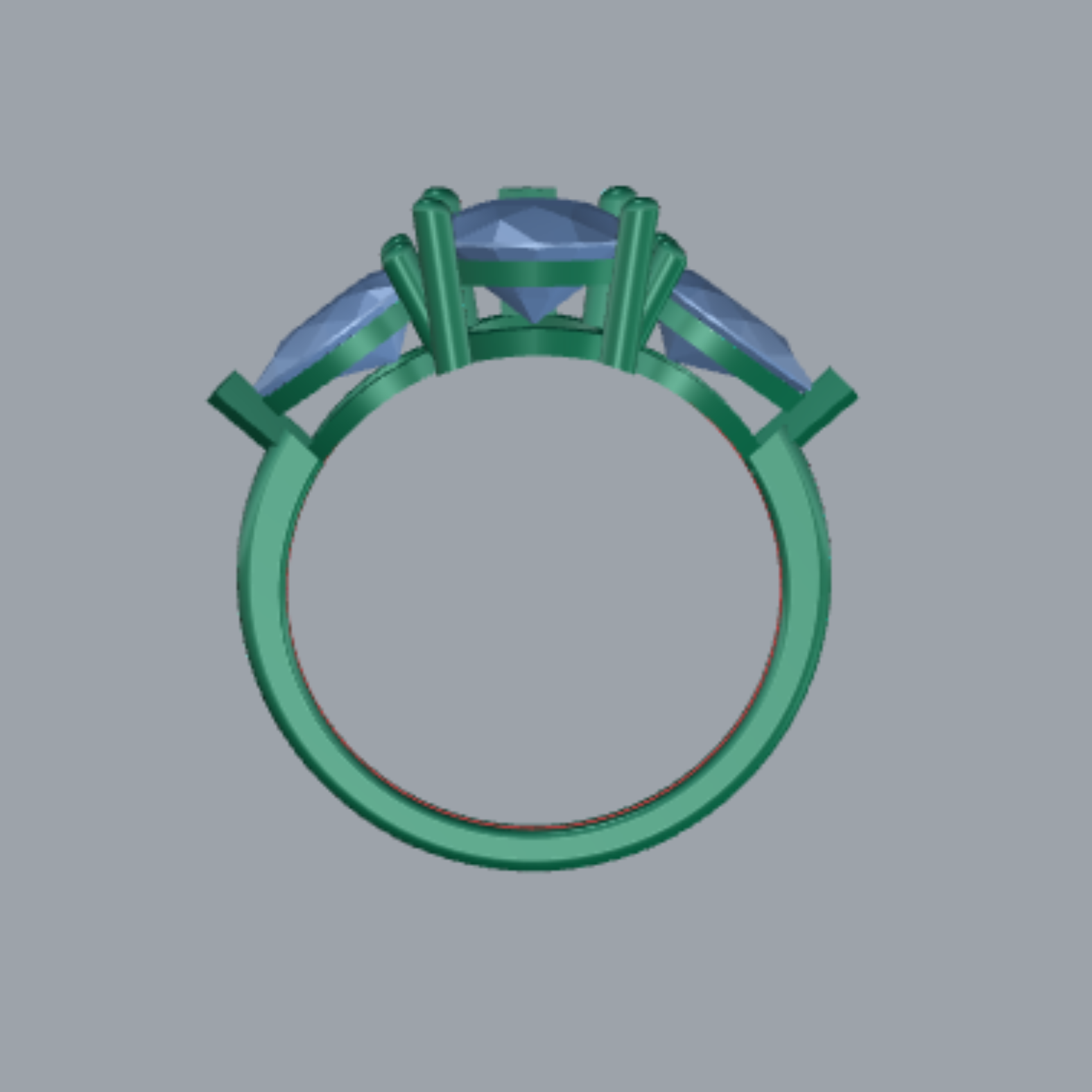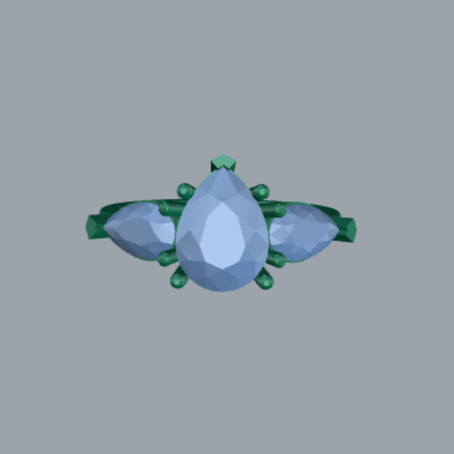 This is a 3DM CAD file of a timeless Pear Cut Three Stone engagement ring design. The Three Stone design emphasizes the beauty of the center stone, making it perfect for custom jewelry projects and professional rendering.