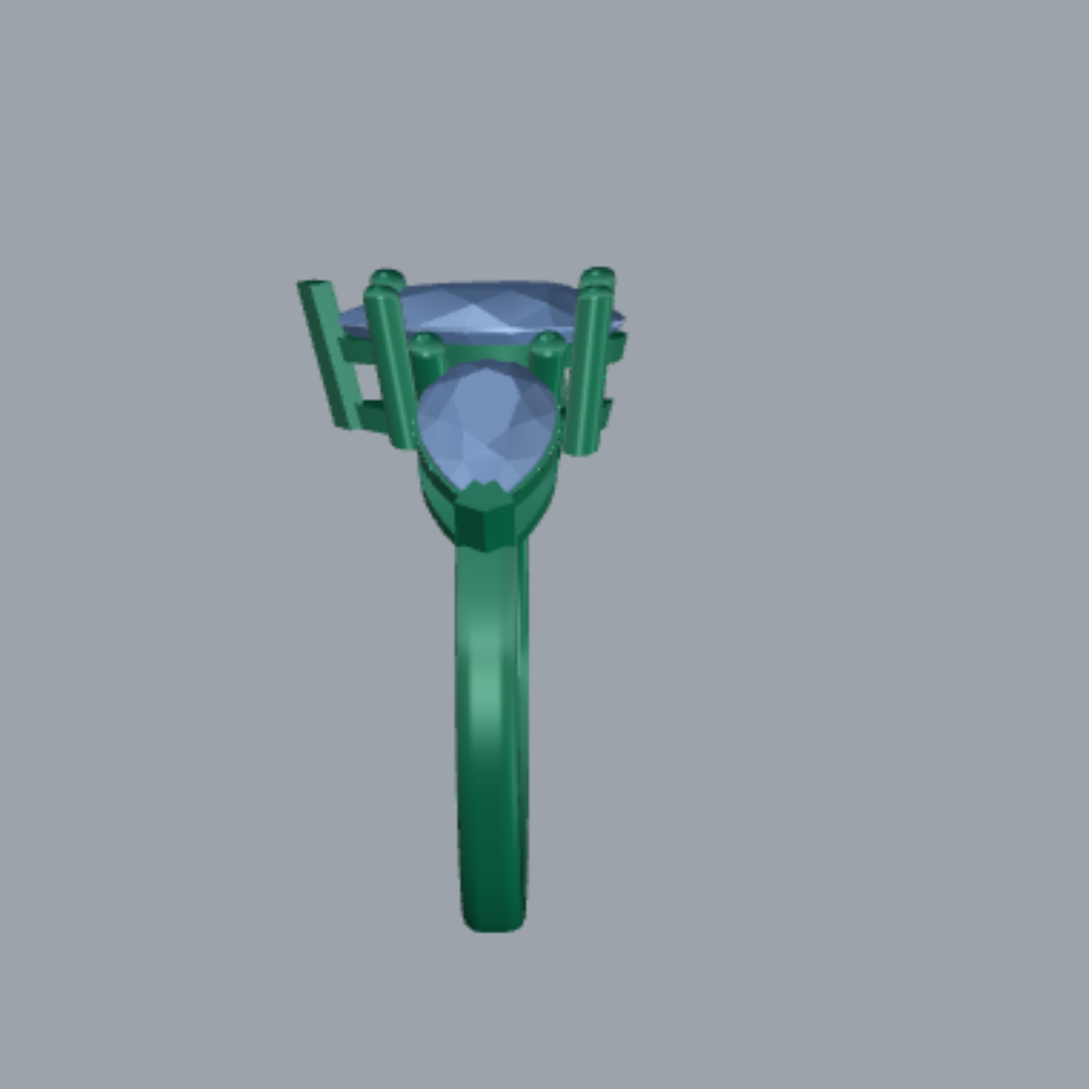 Pear Cut Diamond Three Stone Style Engagement Ring Jewelry CAD 3dm File