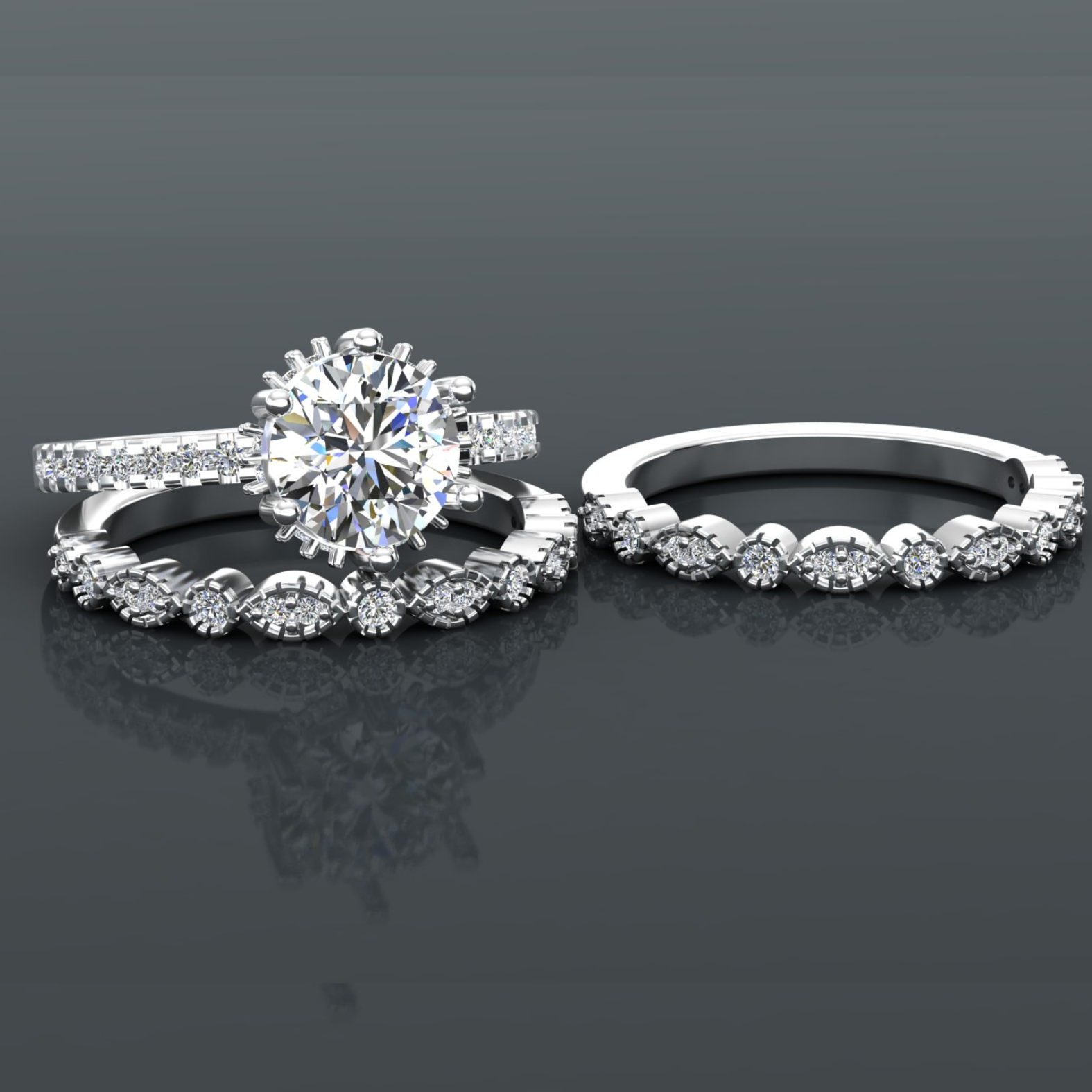Round Cut Diamond Pave Style Bridal Set 3DM CAD File